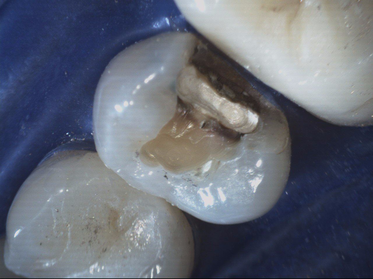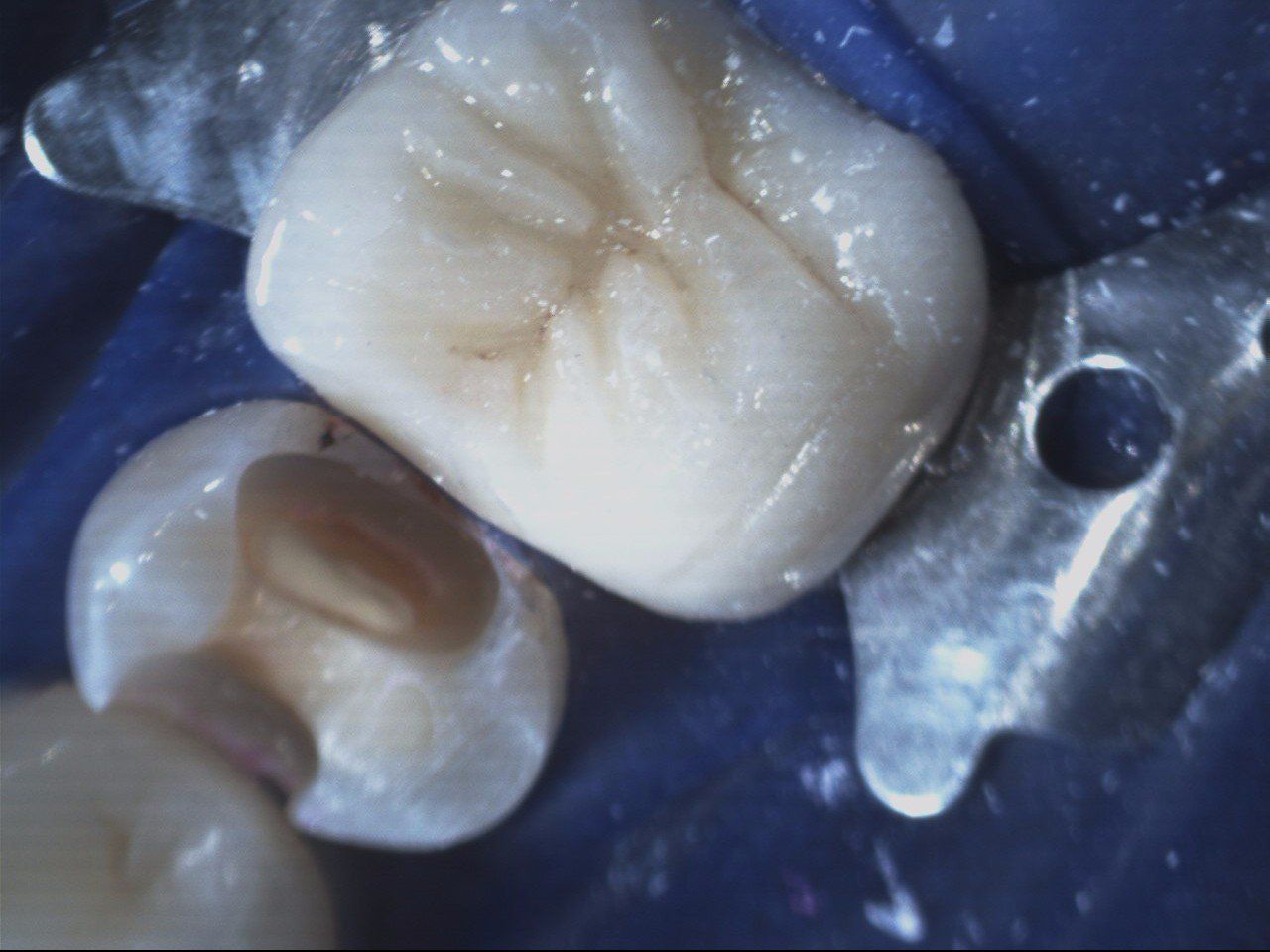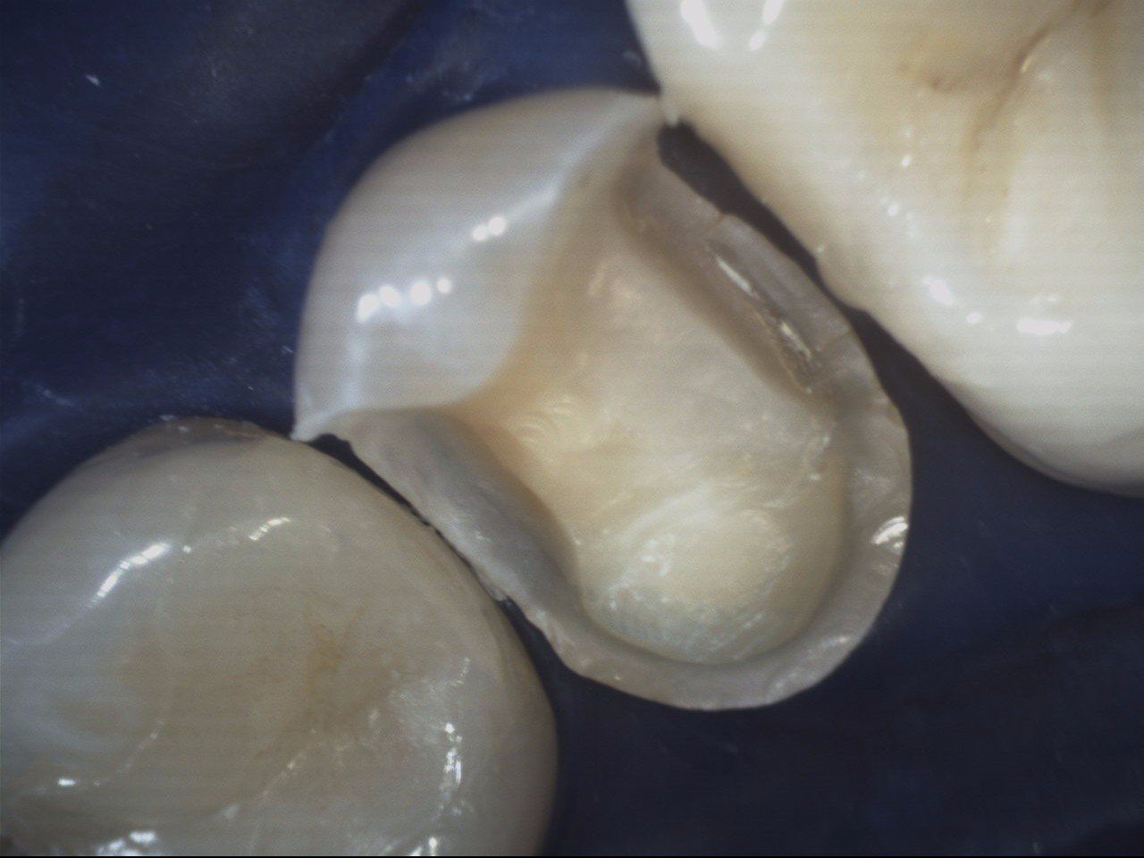 Vollkeramische Teilkrone nach adhäsiver Befestigung.